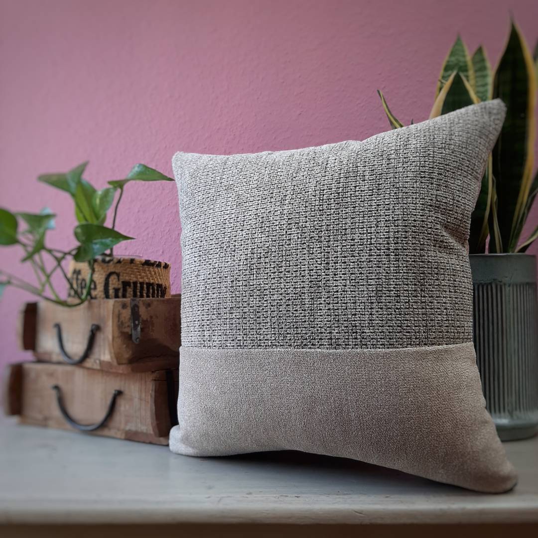 Dieses handgemachte Upcycling-Kissen aus ausgedienten Stoffmuster-Katalogen renommierter Möbelhäuser schippert inklusive Füllung zu Dir!